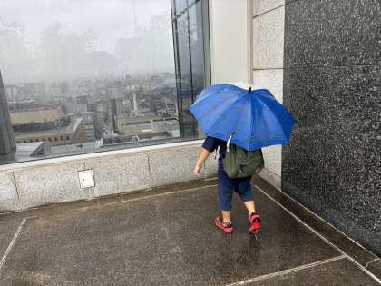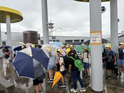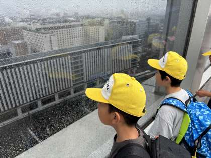 階段をのぼった先の広場で、京都駅の南側や北側の様子を見ました。