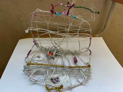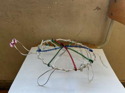 図画工作科の授業では、針金を使って創作アートをつくろうと、楽しい活動を続けています。
