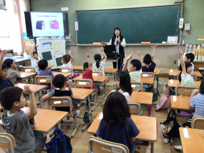 非行防止教室では、伏見警察署のスクールサポーターの方から下校時の不審者を見かけたときの身の守り方や学校や地域での安全な暮らし方について話を聞いたり、実演をしたりして学習しました。