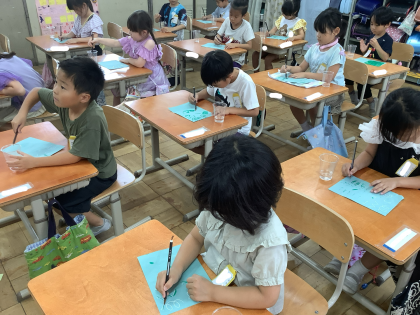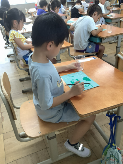 筆の使い方や姿勢に気を付けて、筆の体操を頑張りました。