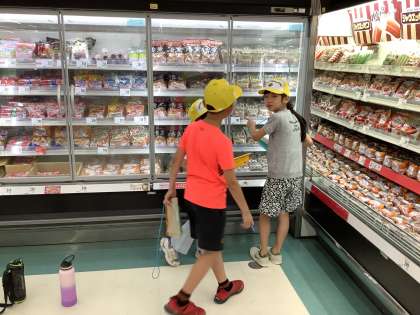 お店の人に話を聞きながら、スーパーの工夫を見つけていました。