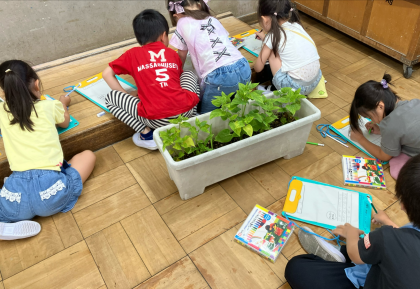 よく見て、触って、におって五感をしっかり使いながら観察カードをかいていました。