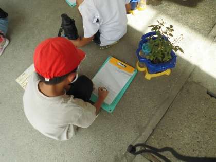 生活科で育てているミニトマトの観察をしました。