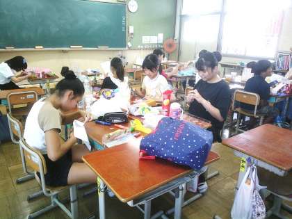 図画工作科「ドリーム プロジェクト」では、水害や火災、地震などの災害に強い町をお家から集めた材料で作っています。