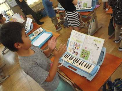 音楽では曲にあわせてリズム打ちをしました。