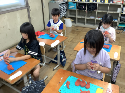 ひねりだしたり、つまみだしたりしながら工夫して作っていました。