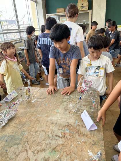 図工室へ鑑賞に来てくれた1年生。