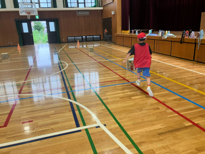 今日はぴょんぴょんコースに挑戦したあと、それぞれのチームで相談して、何のかけっこをしたいか選びました。