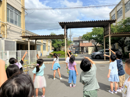 空の黒板に漢字の「一」を書く場面があったので、子どもたちもまねっこをして書いてみました。