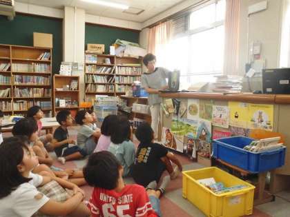 読み聞かせを聞くのがとても大好きで、真剣な表情で聞いていました。