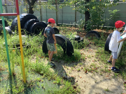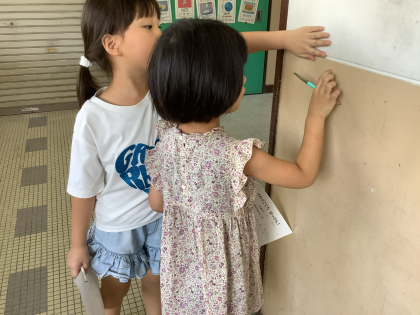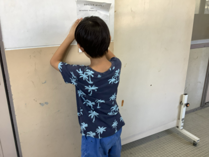 図画工作科「さわりごこちはっけん」で、運動場や中庭に出て色々な物を触りどんな触り心地がするかを考えました。