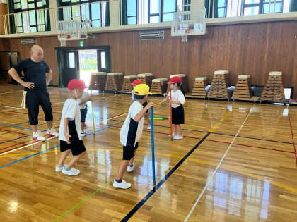 棒では、グループで協力して「棒キャッチ」をして遊んでいました。