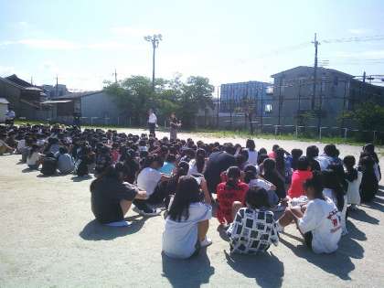 全員がハンカチを口元にあて、しゃがんで3年生を先に送る行動をとれていました。