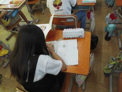 赤とんぼは秋になると出てくるという話をして、絵に表して表現をしました。