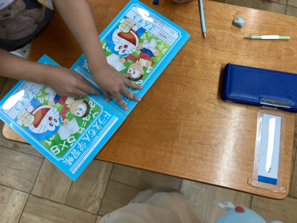 鉛筆やノートなどを直接並べて、大きさくらべをしました。