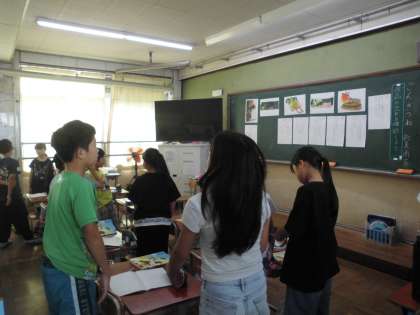 挿絵と文を並べ替えて、「ごんぎつね」のお話を簡単に説明するための学習をしました。