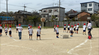運動会に向けて、運動場での練習が始まりました。