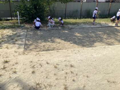 運動会にむけて運動場の草抜きをしました。