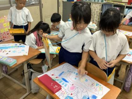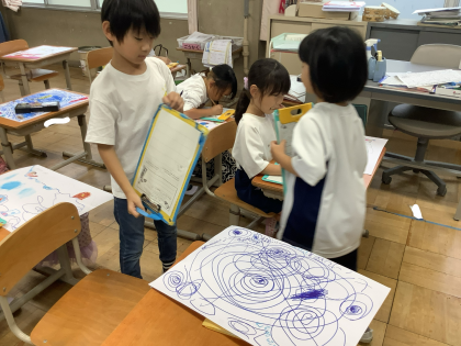 今日は前回かいた「せんのぼうけん」の鑑賞をしました。
