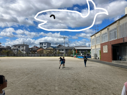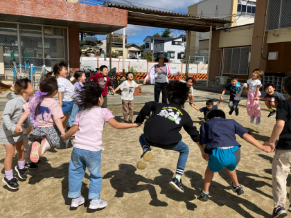 1組でもくじらぐもにのるために、みんなで輪になって大ジャンプ!!