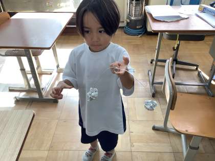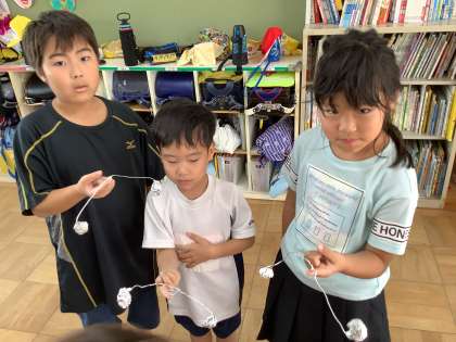 わくわく実験で〈おもりのはたらき〉を楽しみながら学習しています。