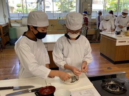 みそ汁チームは煮干しの準備です。