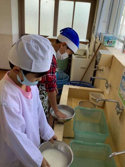 ドキドキしながらも、米を流さないように気をつけて洗いました。