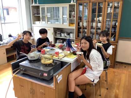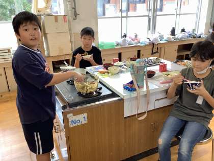 みんな手際よく準備、調理、片付けを済ませ、自分たちで作ったご飯とみそ汁は給食といっしょに食べました!