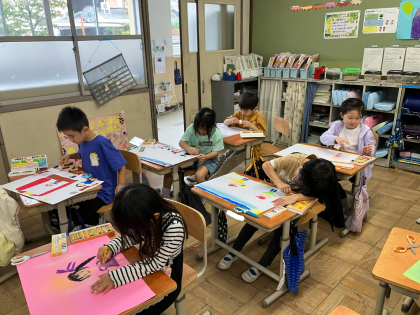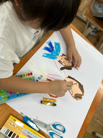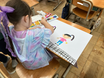 今日は学校生活の中で楽しかったことや、したことを絵にかいて表現しました。