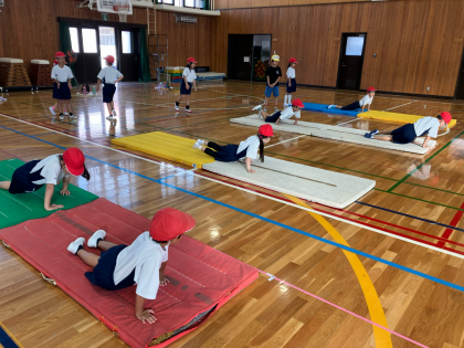 始めは、アザラシやクマ、うさぎになりきりながら体慣らしをしています。