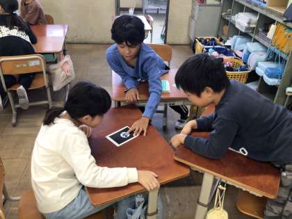 アートカードを見ながらお話をしています。