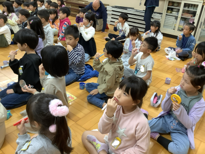 虫歯が出来る原因や、正しい歯の磨き方について学習をしました。