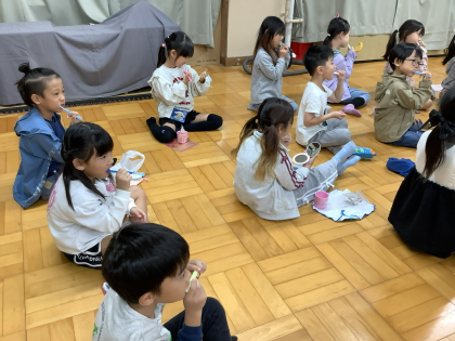 先生の話をしっかりと聞いて、正しい磨き方で磨こうと頑張っていました。