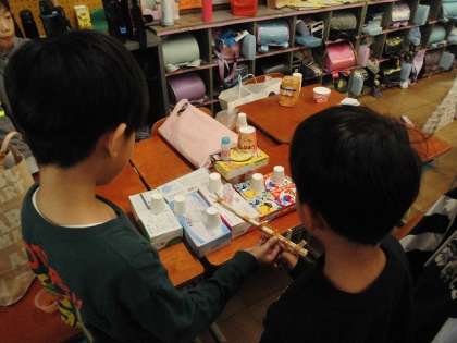 おもちゃフェスティバルを開催するためにまずは自分たちでお店を開いて交流しました。