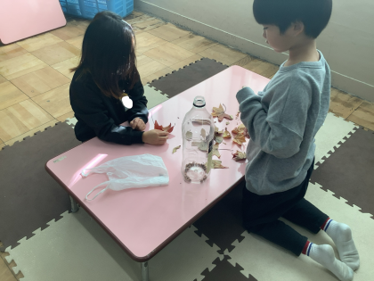 「ペットボトルにドングリを入れると楽器になったよ」