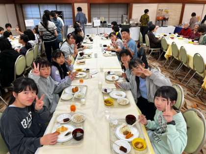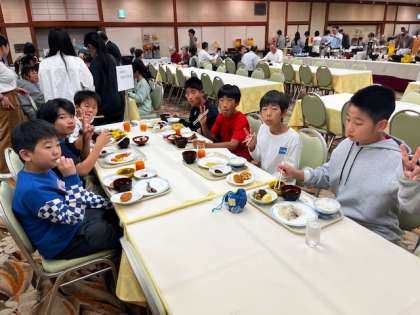 6年 修学旅行「しっかり食べています」