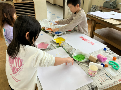 色々な材料をスタンプにすると、どんな形ができるのか試しました。