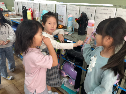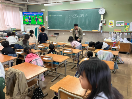 英語でじゃんけんをしたり、色の言い方や数字の言い方をみんなで言ったりしました。