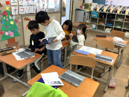 タブレットを見せながらどこに書いてあるのかを交流しました。