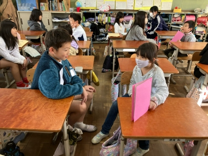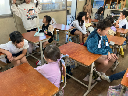 今日は4年生に国語で作ったお話の読み聞かせをしました。