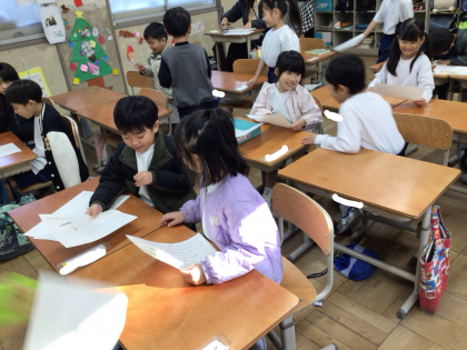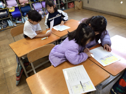 たぬきの糸車で自分の好きな場面を友達と交流しました。