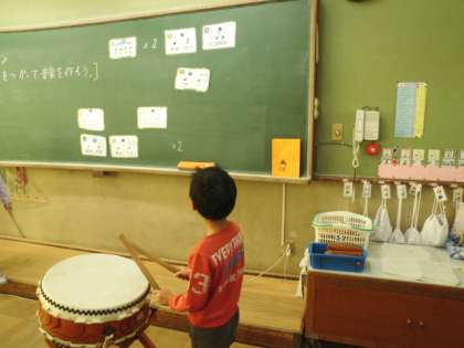太鼓では、6つのカードから4つのリズムを選んで、リズムづくりをしました。