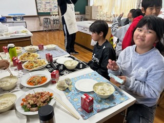 チームに分かれ3つの料理を作りました。調理で難しいこともたくさんあったようですが、とても楽しそうに取り組むことができていました。
