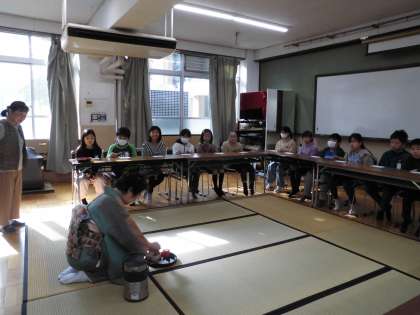 みんな緊張した面持ちで、茶道の作法を教えてもらいました。