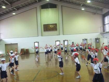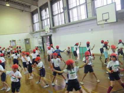 大粒の汗を流しながら,移動の際の立ち位置などを確認しています。