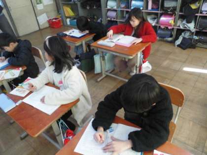 2年生の国語では、自分のお気に入りの詩を1つ選んで、画用紙に書きました。