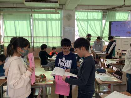 家庭科の授業では、自宅の掃除の様子を友だちと伝え合いました。