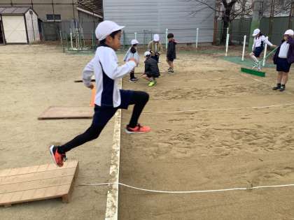 遠くまでとべるように、ふみきりのタイミングを意識してとんでいました。