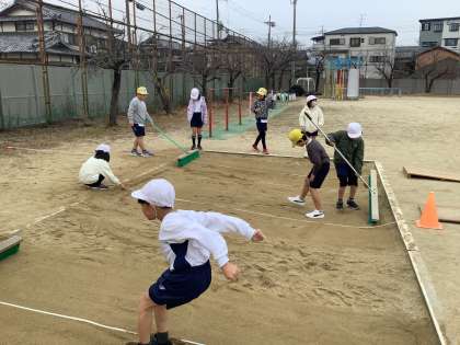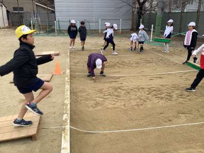 体育の授業ではばとびをしています。