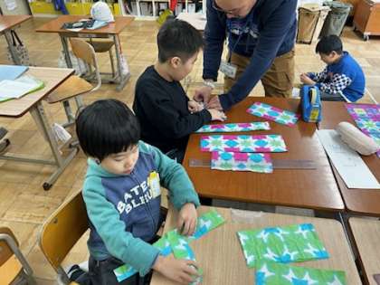 みんなが好きな色ぞめを使ってカメレオンを作りました。